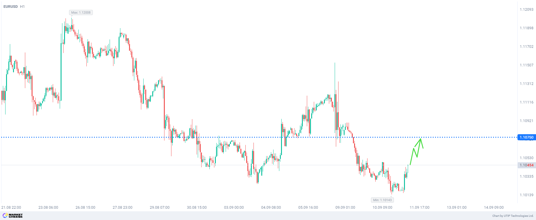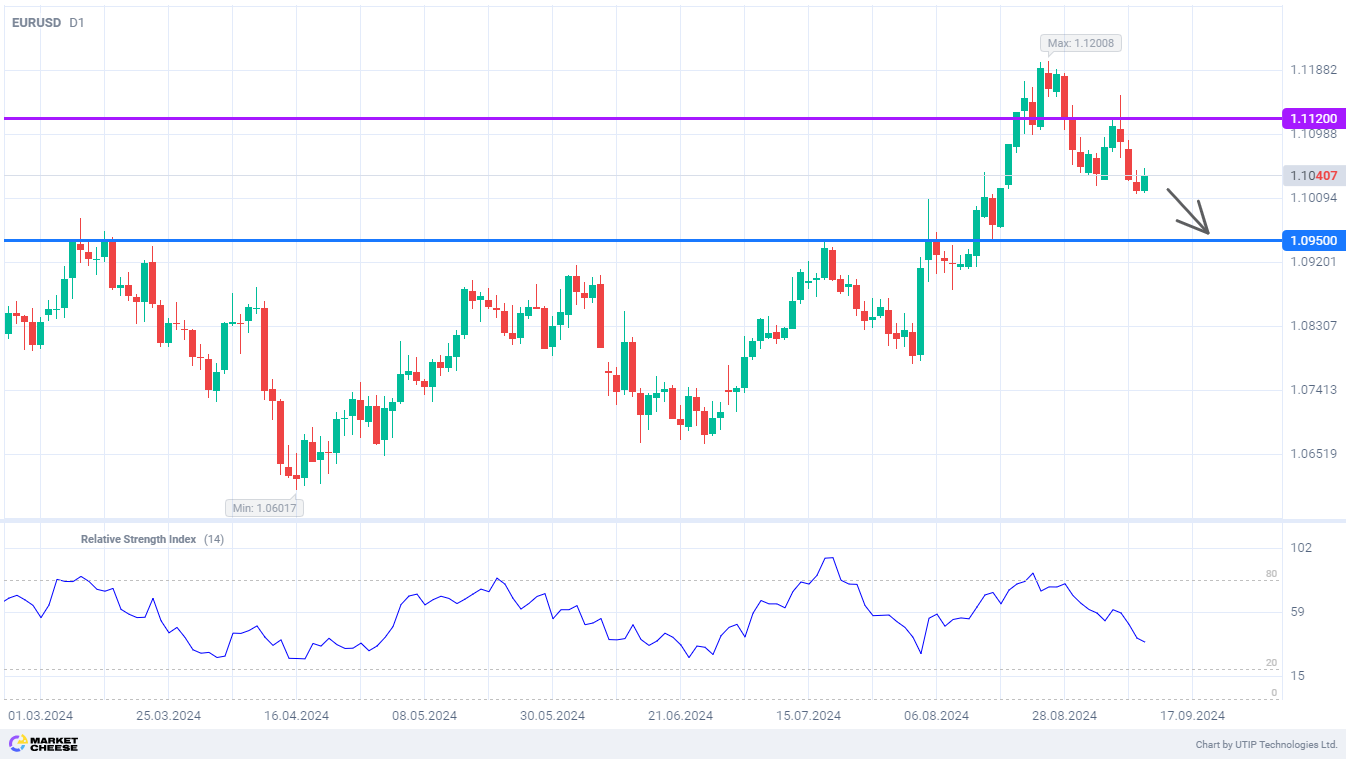 EURUSD опустится до уровня 1,095 после заседания ЕЦБ