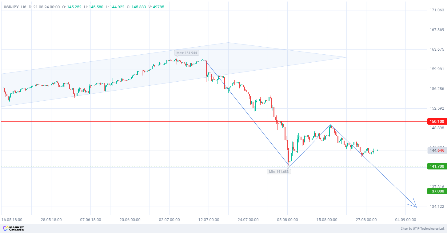 Продажа USDJPY от верхней границы нисходящего треугольника