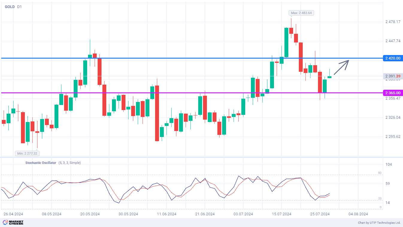 Отскок цен на золото стремится к отметке 2420