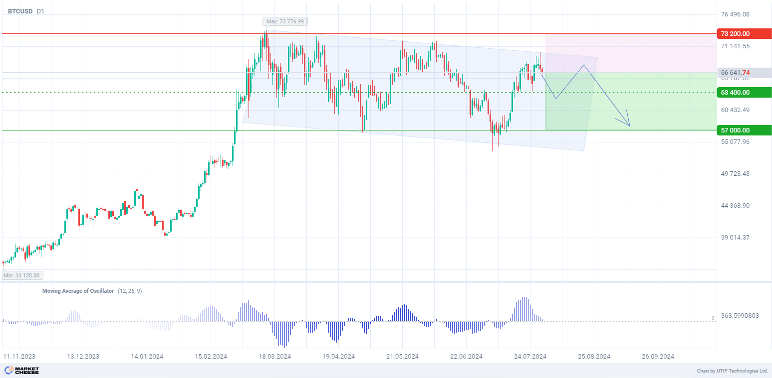 Продажа BTCUSD до 57 000 на фоне ожиданий возможных распродаж в США