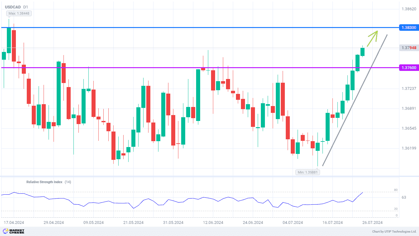 Второе снижение ставки Банка Канады отправит USDCAD к уровню 1,383