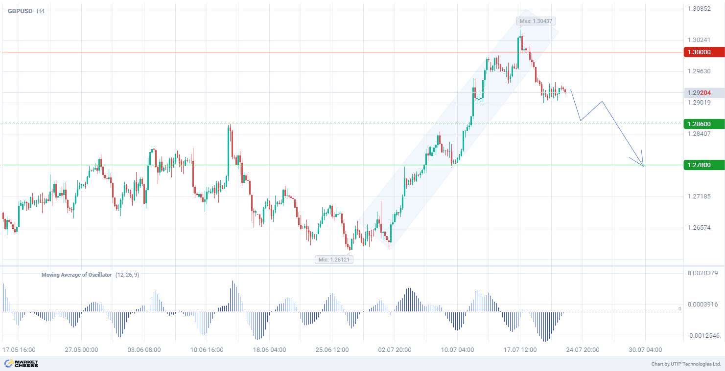 Смена тенденции в паре GBPUSD может снизить цену до уровня 1,2780