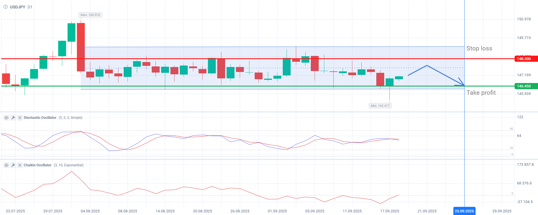 Продажа USDJPY с целью 146,450 на фоне ожиданий решения Банка Японии