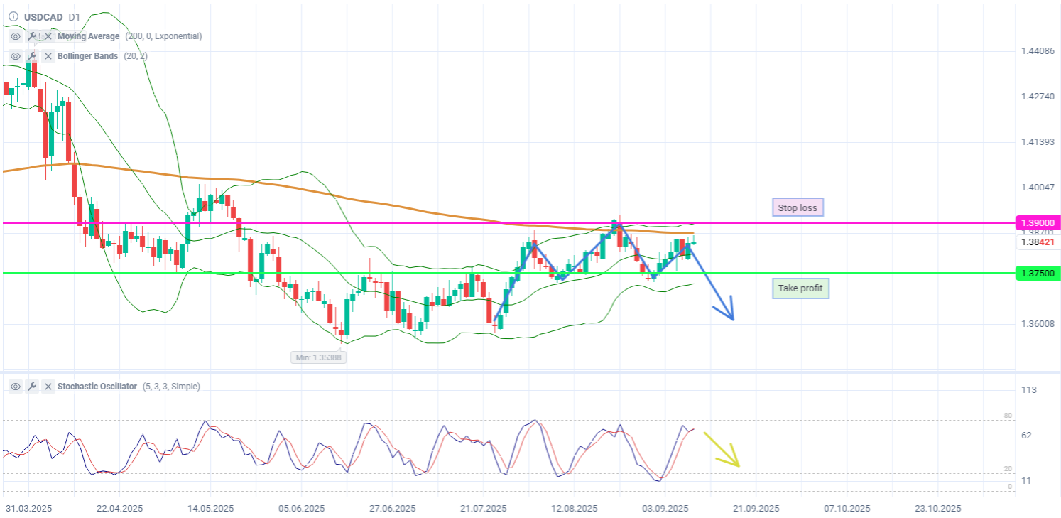 На графике USDCAD формируется сигнал к развороту в сторону уровня 1,375