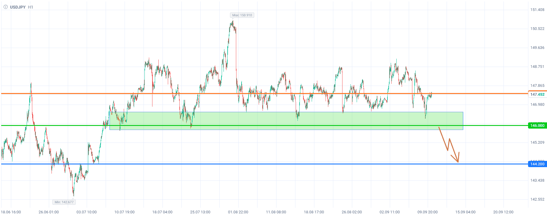 Продажа USDJPY от верхней границы нисходящего треугольника