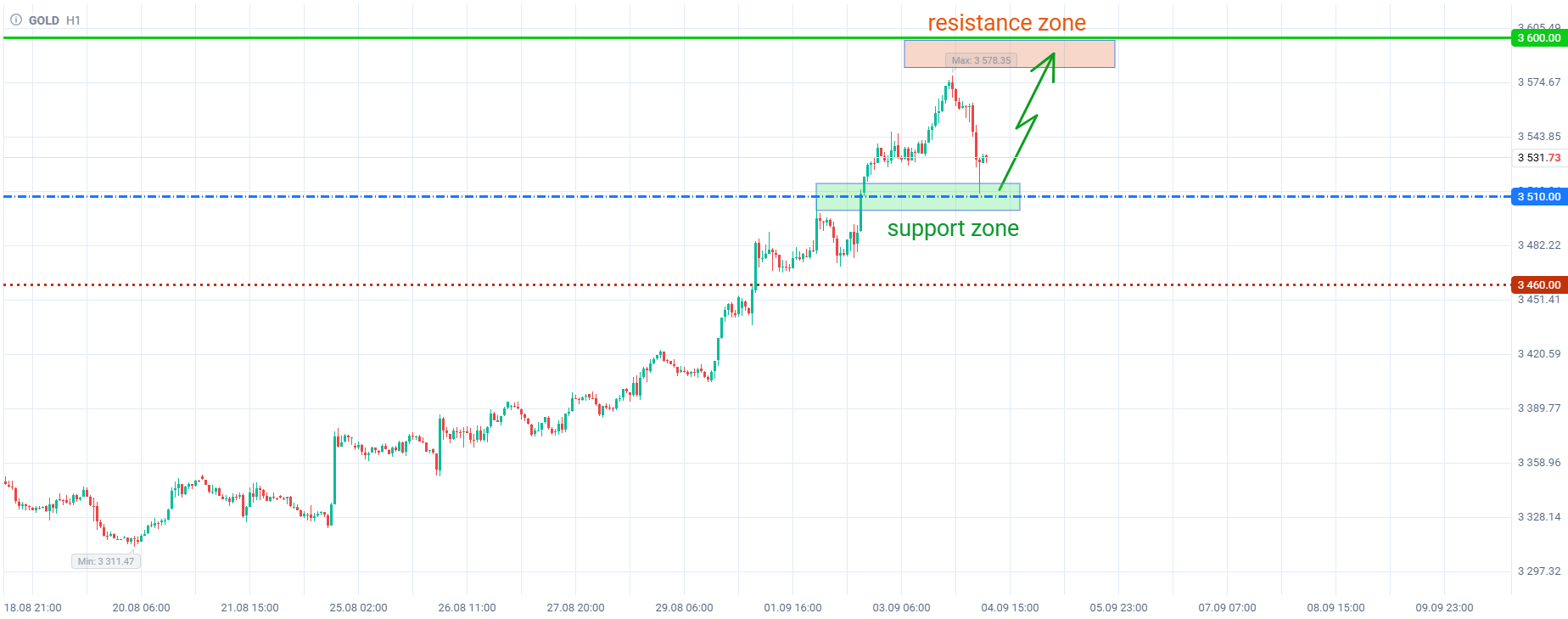 Покупка золота после коррекции с дальнейшей целью роста до отметки 3600