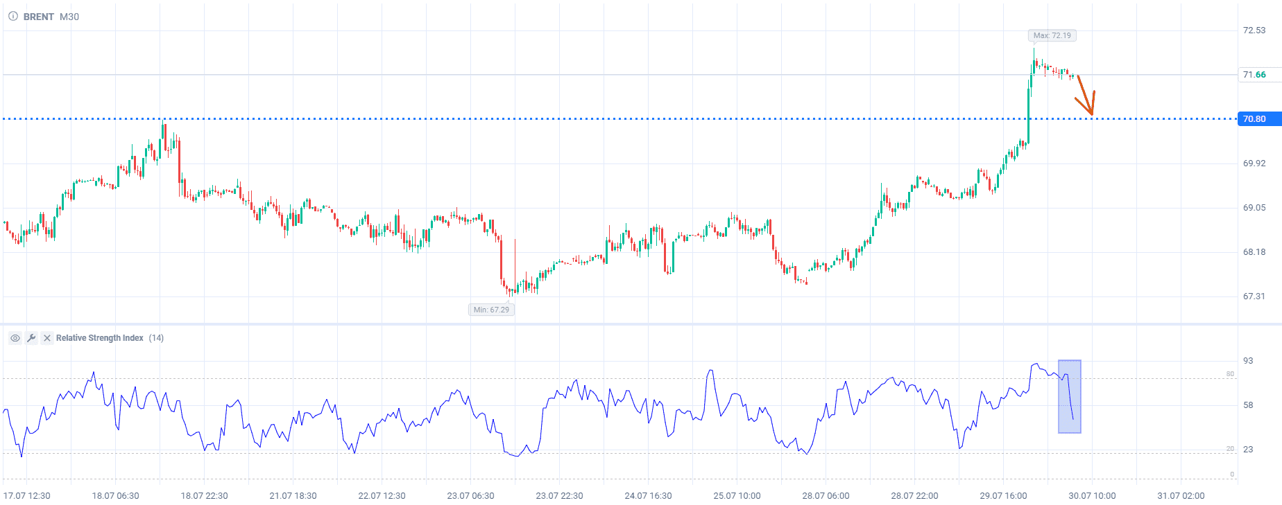 Продажа нефти Brent до уровня 70,8