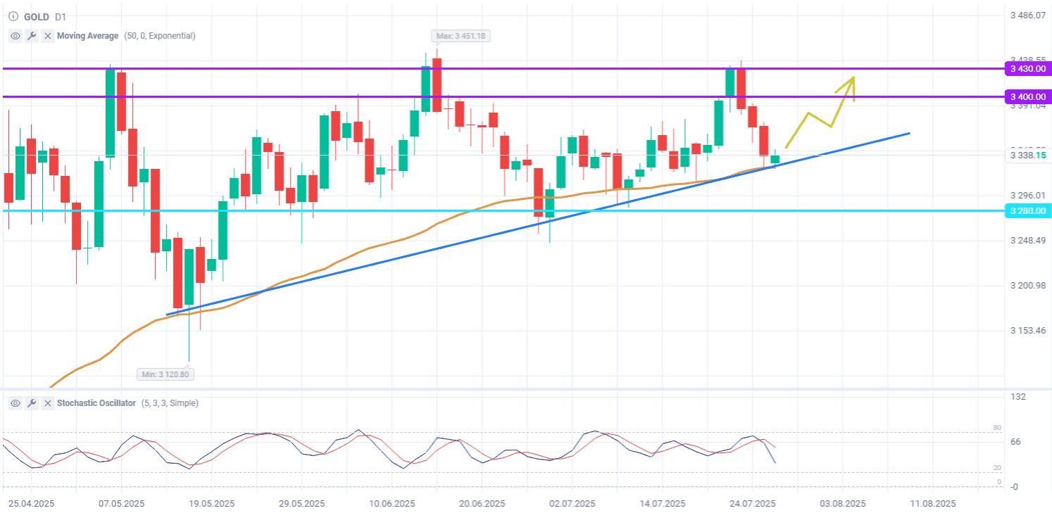 Линия восходящего тренда поддерживает отскок золота к 3400