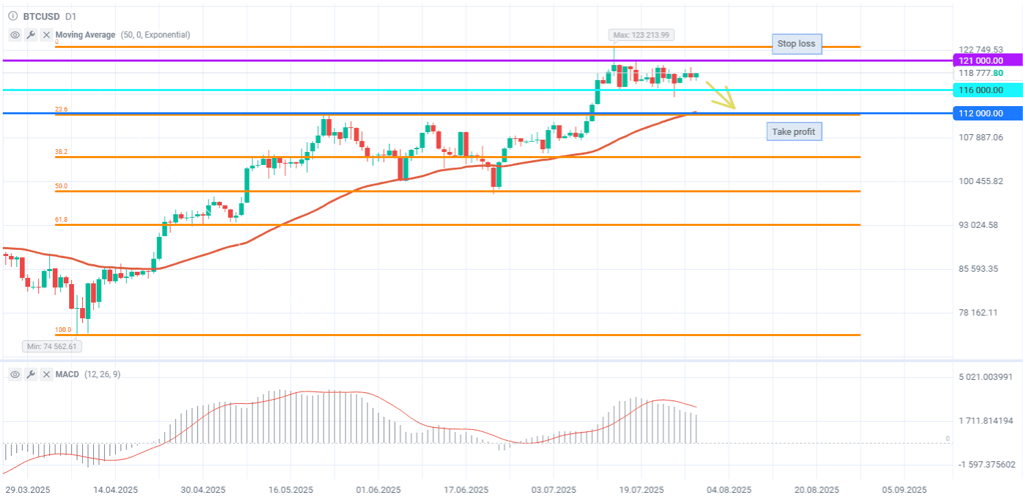 Биткоин приближается к выходу из диапазона 116000-121000