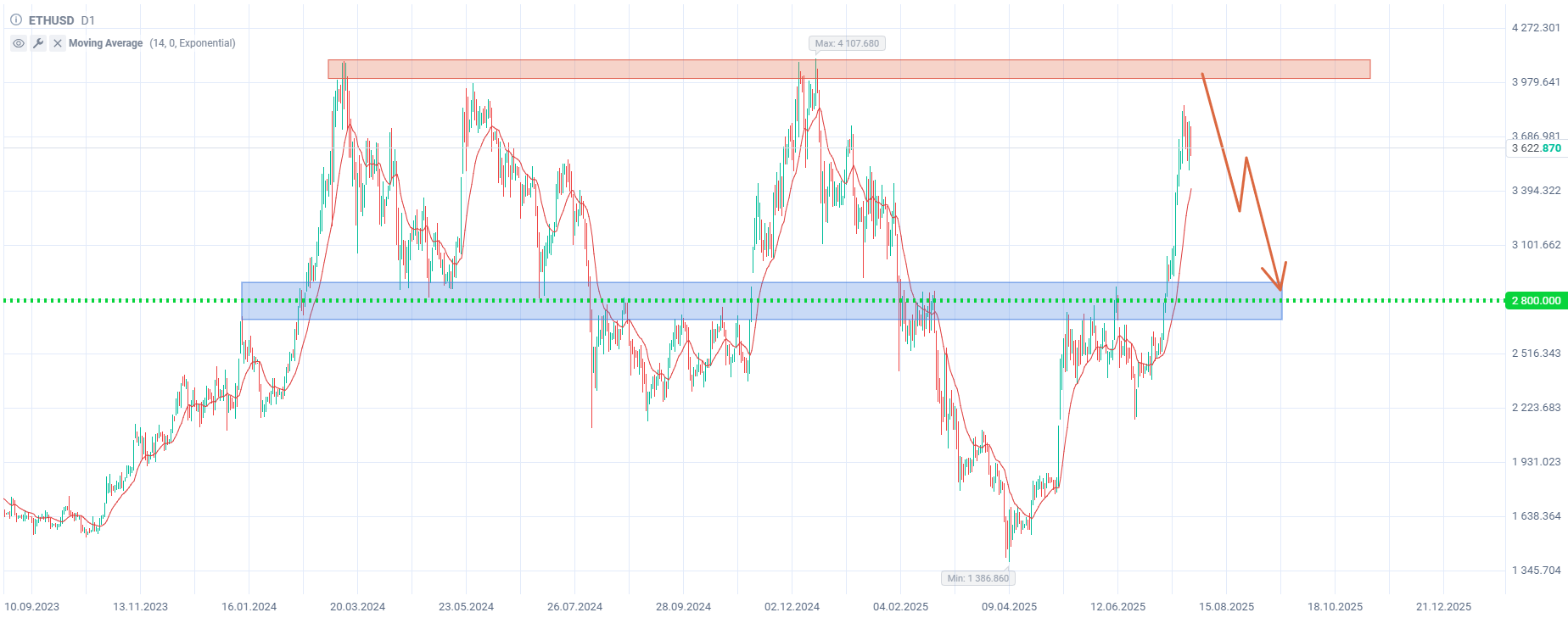 Пора присматриваться к продаже эфириума. Цель — 2800 долларов за монету