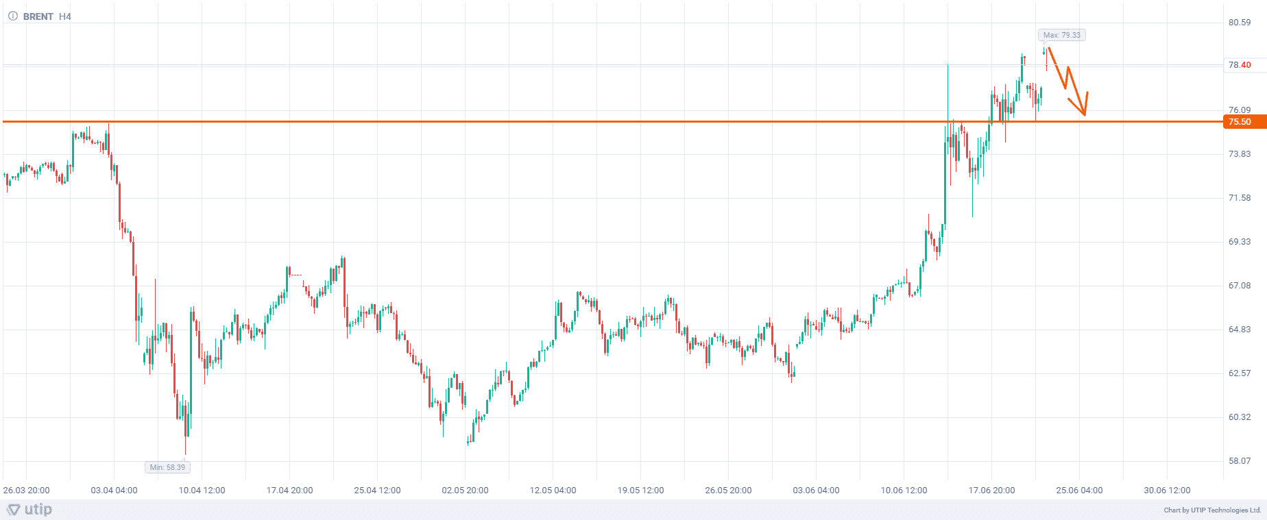 Продажа нефти Brent до уровня 75,5