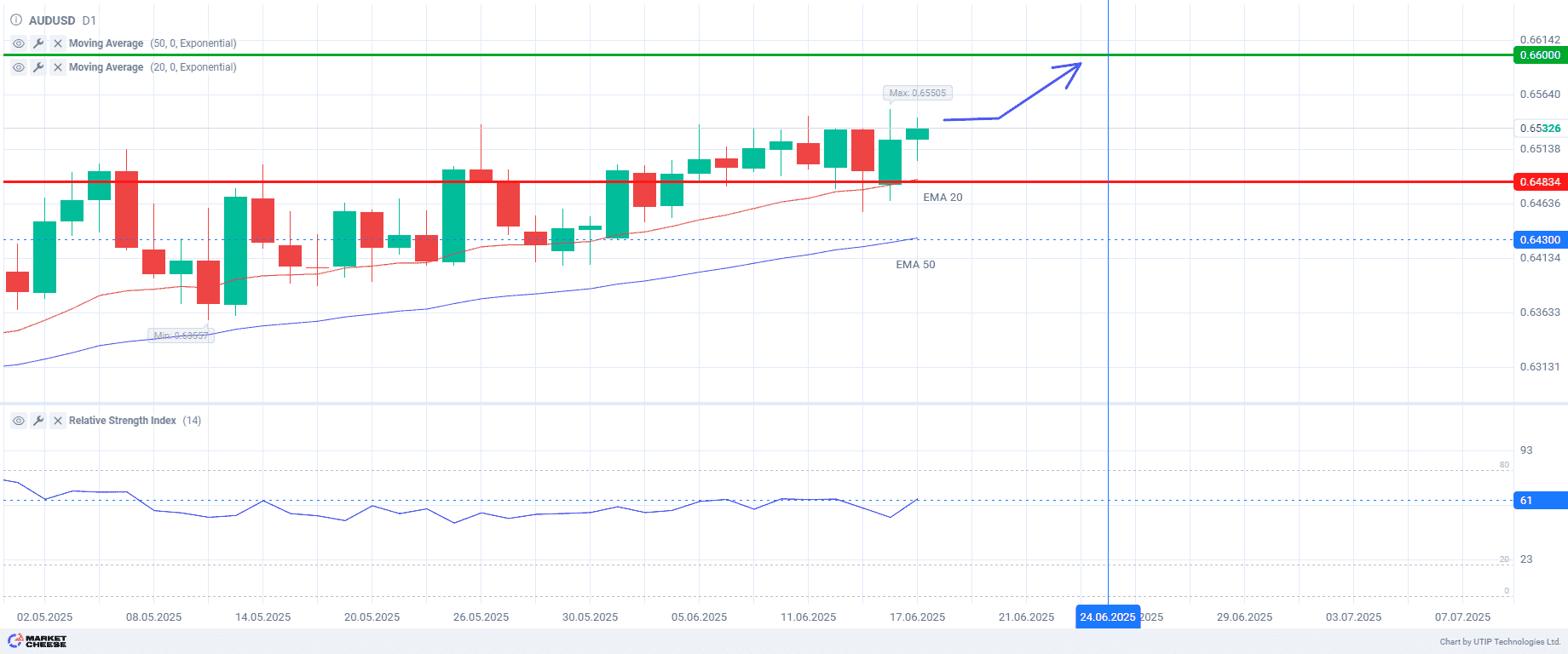 Покупка AUDUSD с целью 0,66 на фоне восходящего тренда и геополитической нестабильности