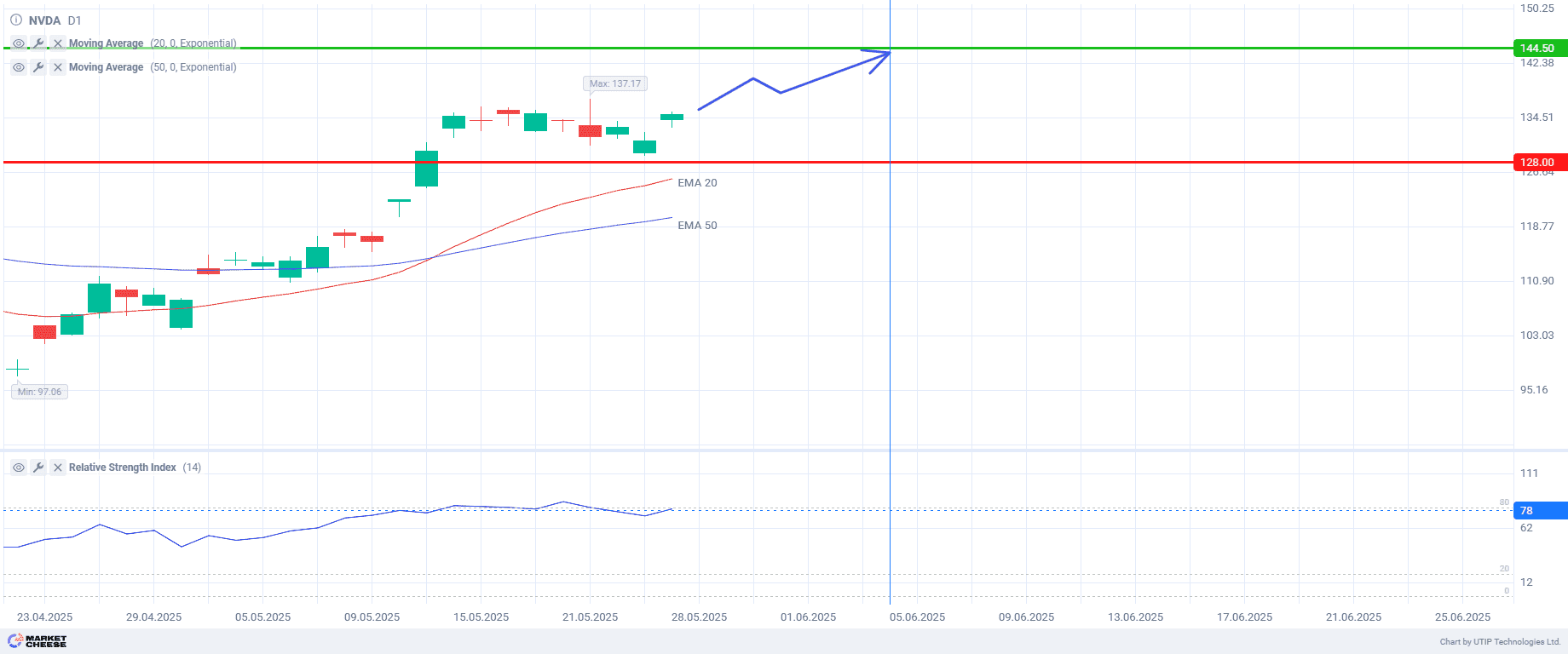 Квартальный отчет NVIDIA может продлить коррекцию до уровня 170
