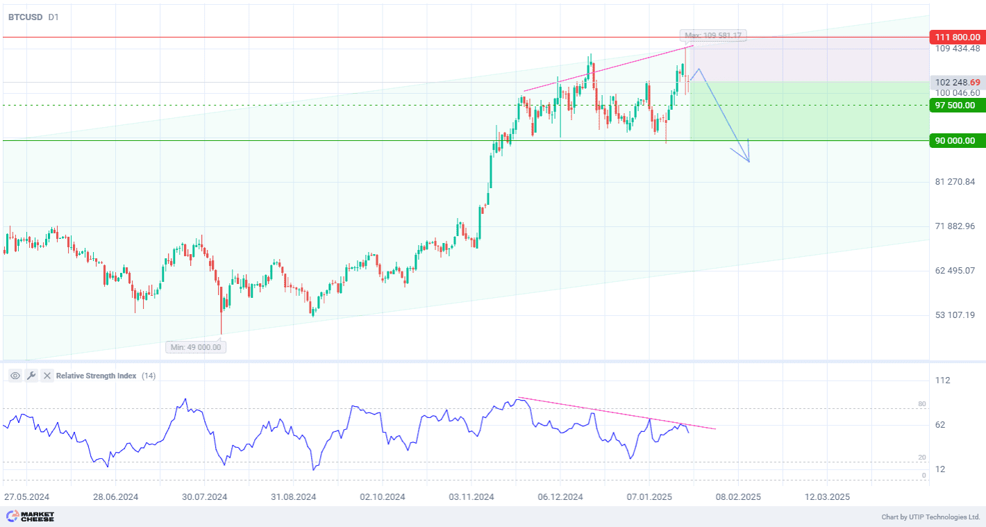 Признаки коррекции BTCUSD указывают на продажу до уровня 90 000