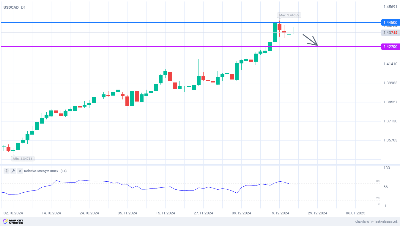 Развитие коррекции может привести USDCAD к уровню 1,427