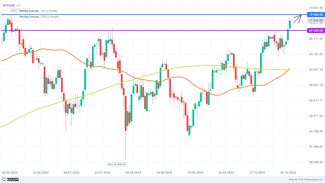 Биткоин уверенно движется к летней вершине и уровню 72000