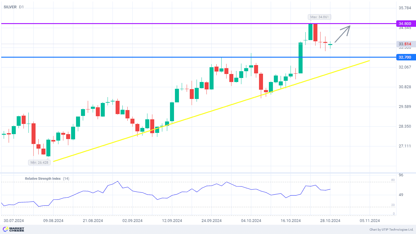 Серебро взяло паузу перед обновлением 12-летнего максимума 34,8