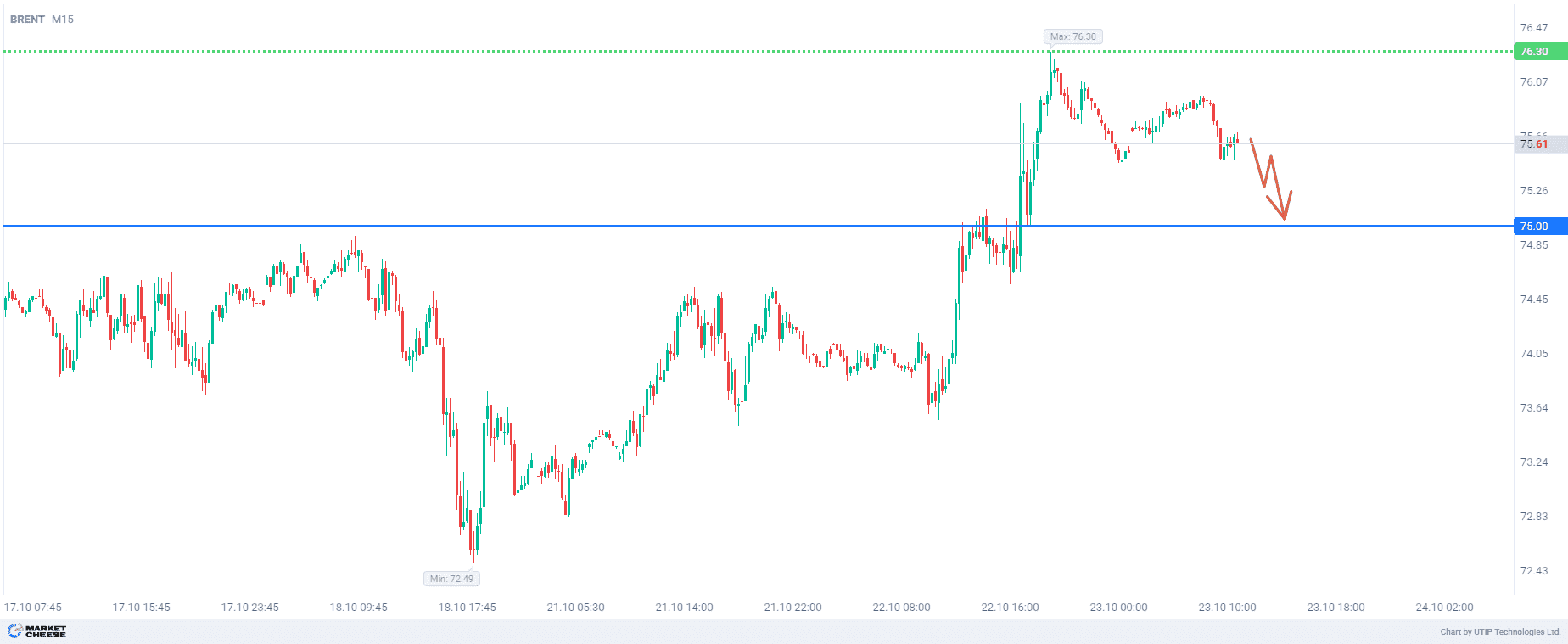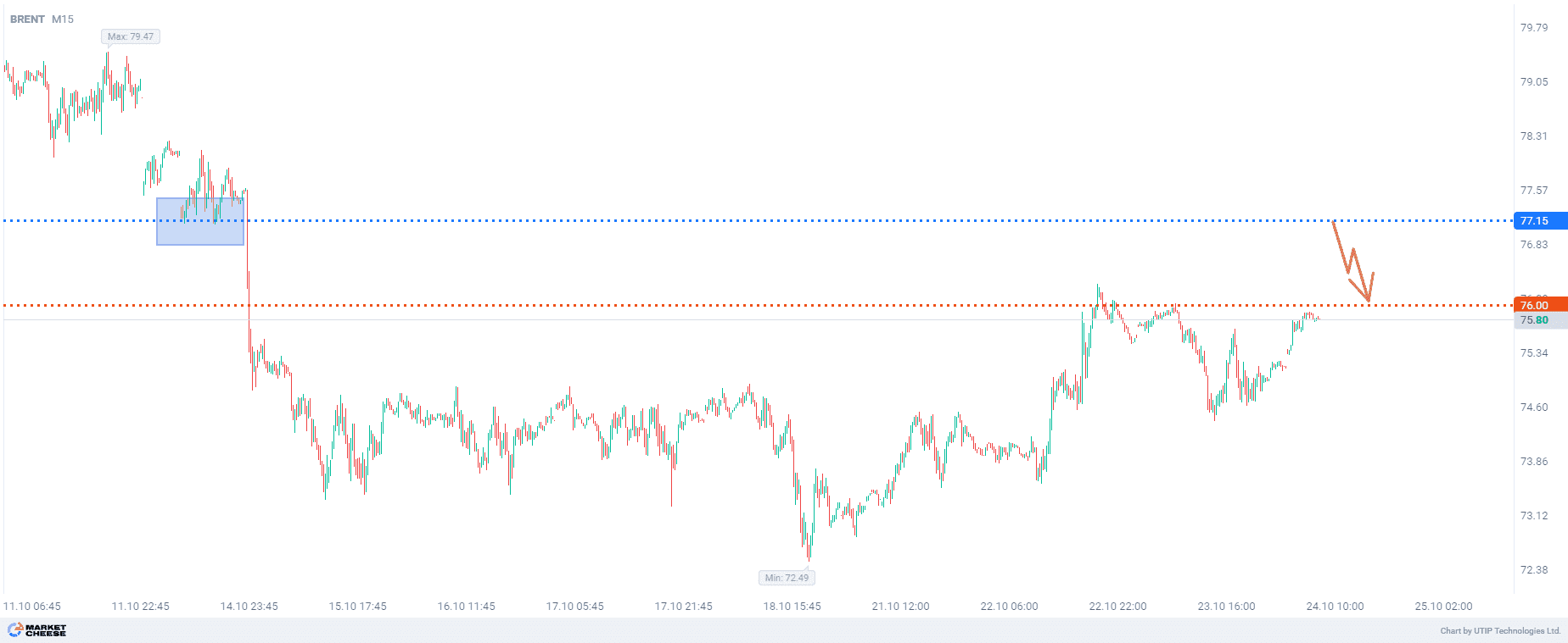 Продажа Brent от уровня 77,15 долларов за баррель